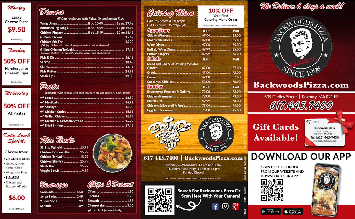 Welcome to Backwoods Pizza, a beloved gem nestled in Roxbury, Massachusetts. Known for its delicious and well-crafted pizzas, Backwoods Pizza offers a rich community experience. With a commitment to quality, their menu features everything from buffalo chicken pizza to hearty steak bomb subs, and the local favorites keep patrons coming back time and again.
